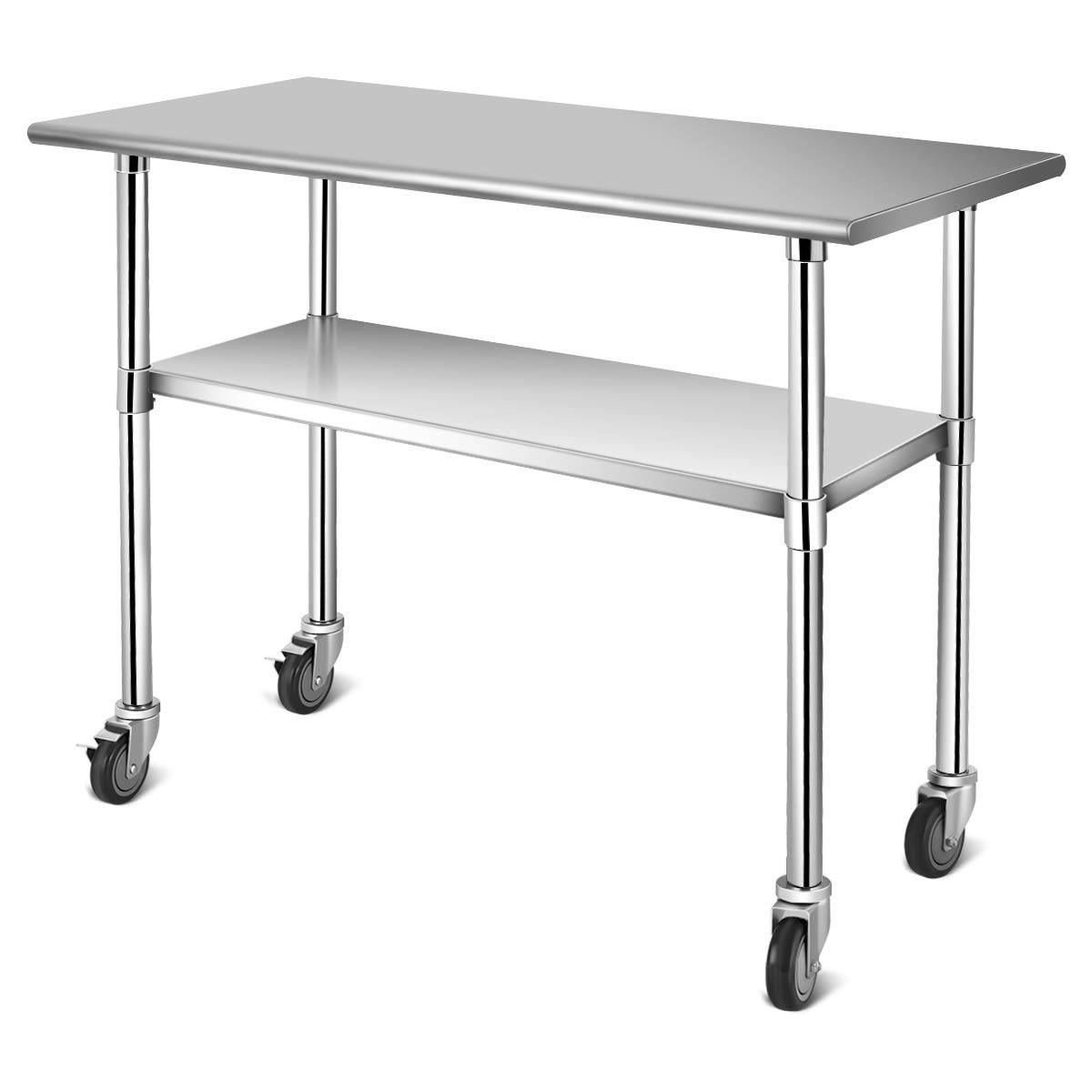 Stainless Steel 4ft x 2ft Kitchen Cart Table on Wheels with Adjustable Shelf