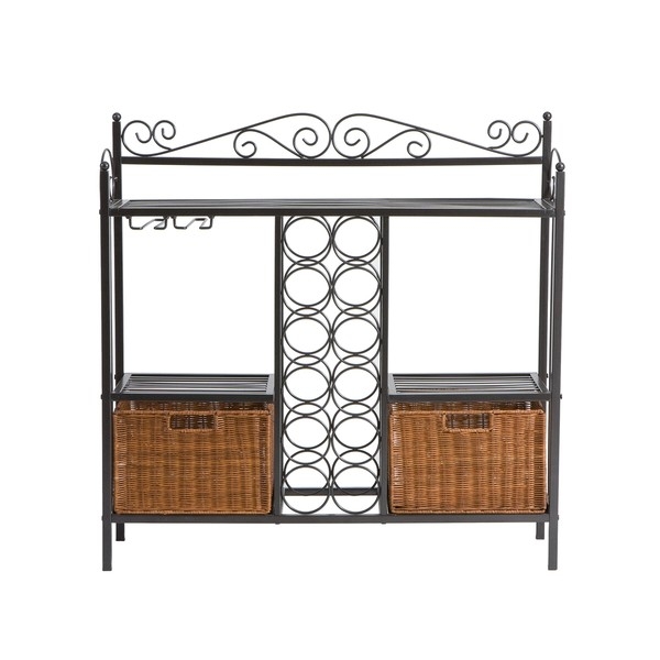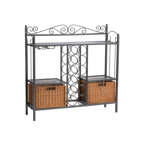 Kitchen Dining Baker's Rack with Wine Storage and Rattan Baskets