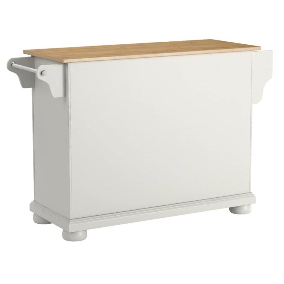 White Kitchen Island Storage Cabinet with Solid Wood Top